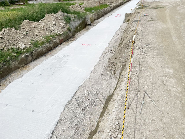 竹林建工では宅地開発の他にも、より大規模な道路工事や水路工事、側溝工事、河川・護岸工事、除草工事などの土木工事も行なっています。